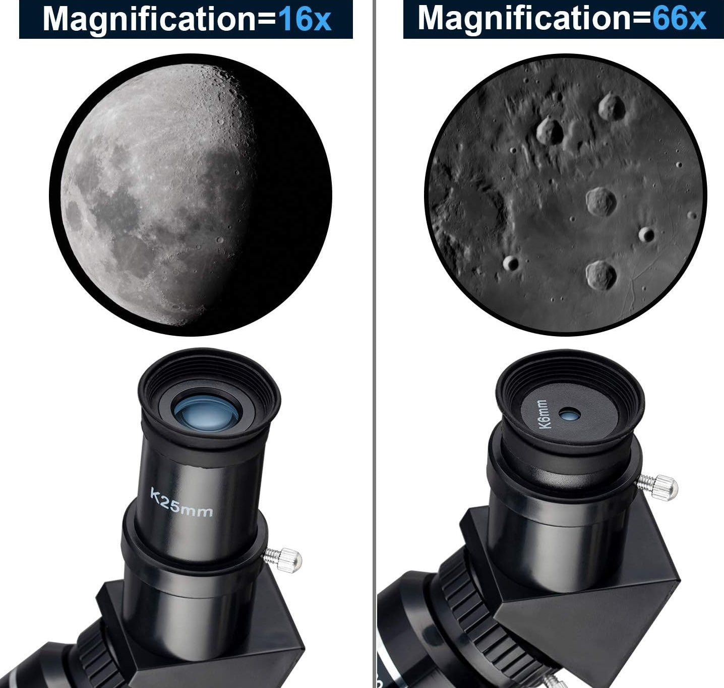 Absolument ! Le grossissement 16x à 66x offre une excellente vue des objets célestes comme la lune, les planètes et les étoiles. Ce niveau de zoom est largement suffisant pour des observations nettes et détaillées, même pour les amateurs.